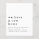 Une excellente alternative PAPER (pas carte) SANS ENVELOPPES au format RÉDUIT de 4,5” x 5,6” et à prix réduit. (Les enveloppes standard A6 sont les plus proches pour s'adapter). Détails simple déménagement nouveau domicile. L'en-tête est grand en minuscules élégantes avec les détails en dessous. Beaucoup d'espace blanc en haut pour une sensation contemporaine ! Personnalisez facilement le texte avec vos propres détails.