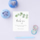 Une alternative PAPER (pas de carte) de grande valeur SANS ENVELOPPES à la taille plus petite 4,5" x 5,6" et à un prix réduit. (Les enveloppes standard A6 sont la taille la plus proche pour s'adapter) Elégant Eucalyptus Leaf Script Photo Merci. Une élégante branche de feuilles d'eucalyptus verts coule en partie du côté droit, avec un Merci de typographie serti dans un style d'écriture moderne. Sur le dos, changez votre photo préférée de votre jour (orientation portrait). Le reste du texte sur le devant vous pouvez facilement personnaliser à vos propres mots.