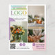 Small business marketing flyer for any profession and business that can showcase the work in photos. Add your logo, specialties, offer, and QR code. On the back, write more text about the business and why your client should pick you! This promotional small business flyer features your logo, a bigger version on the front and a smaller version on the back. You can add four photos of you and your employees or of your work to give your potential customers a taste of what you can offer. Purple and pink details and small social media icons. Add your website and social media handle.