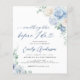 Vous cherchez une invitation à la douche de nuptiale magnifique et mémorable? Notre invitation "Quelque chose de bleu avant de faire" est le choix parfait! Avec un design époustouflant et une teinte bleue douce, cette invitation impressionne vos invités et donne le ton pour une douche nuptiale inoubliable.