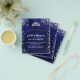 Veuillez noter que cette invitation est sur papier de prospectus et très mince. Les enveloppes ne sont pas incluses. Pour des invitations plus épaisses (même conception), veuillez visiter notre magasin. Pour un élégant Quinceañera, 15ème anniversaire. Couleur arrière - plan bleue, la couleur bleue est inégale. Décoré avec de la poussière de parties scintillant en faux argent et une tiare, couronne. Personnalisez et ajoutez un nom, un âge et des détails de la fête. Le nom est écrit avec un script de style manuscrit