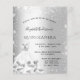 Veuillez noter que cette invitation est sur papier de prospectus et très mince. Les enveloppes ne sont pas incluses. Pour des invitations plus épaisses (même conception), veuillez visiter notre magasin. Une invitation moderne, élégante et glamour pour une Quinceañera, 15ème anniversaire. Un arrière - plan à l'aspect métallique faux argenté avec de la poussière de parties scintillant et une robe. Le nom est écrit avec un script de style moderne écrit à la main. Personnalisez et ajoutez les détails de votre fête.
