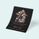 Brochure moderne rose or et noir d'affaires conçue pour des services commerciaux ou résidentiels pour le nettoyage, la ménage, le service de ménage ou de ménage ou les fournitures ménagères. Conception avec icône de maison en or rose et icônes d'équipement de nettoyage à l'intérieur. Customisez l'avant avec deux lignes de texte personnalisé sur une description de services et d'arrière - plans noirs, et ajoutez vos coordonnées complètes à l'arrière et les détails des médias sociaux. Design moderne chic et tendance.