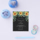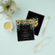 Veuillez noter que cette invitation est sur papier de prospectus et très mince. Les enveloppes ne sont pas incluses. Pour des invitations plus épaisses (même conception), veuillez visiter notre magasin. Un arrière - plan noir décoré de tournesols, de verdure d'eucalyptus. Personnalisez et ajoutez vos noms et les détails de votre fête.