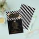 Ceci est un beau flyer pour la promotion de toute petite entreprise avec un fond à bandes noires et un cadre doré avec des fleurs aquarelles