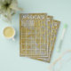 Bingo enterrement de vie de jeune fille Lignées d'argent et d'or. Personnalisez en supprimant le texte (au recto et au verso) et remplacez-le par vos propres mots en utilisant votre couleur, taille et style de police préférés. Déplacez, supprimez et/ou redimensionnez les éléments de conception.