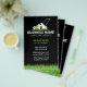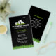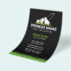 This eye-catching flyer design is perfect for lawn care professionals who want to make a strong first impression. Featuring a striking black and white lawnmower icon on a black background, the card exudes professionalism and reliability. The lush green grass border adds a touch of nature and reinforces your expertise. With ample space for your company name, contact details, and a list of your services, this design is both visually appealing and informative.
