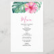 Ces feuilles de menu mariage à budget disposent d'une fleur d'hibiscus d'aquarelle unique et d'une feuille de palmier monstère dans des tons rose et vert éclatants. La page revient à une couleur correspondante. Utilisez les champs modèles pour do-it-yourself votre menu personnalisé de dîner de mariage. Un choix tropical insulaire chic pour les mariages de destination, une douche nuptiale, des dîners de répétition ou tout ce que vous voulez. Pour voir d'autres cartes de menu pour la restauration mariage, visitez le www.zazzle.com/dotellabelle Unique aquarelle art et design de Victoria Grigaliunas de Do Tell A Belle.