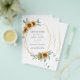 Planifiez votre mariage parfait cette saison avec nos cartes de sauvegarde de thème de tournesol lumineux. Avec une floraison de tournesol et un cadre géométrique à effet doré, cette carte peut être facilement personnalisée pour votre occasion spéciale telle qu'une douche de mariée, une fête de fiançailles, un anniversaire, des anniversaires de mariage, des réunions de famille et toute occasion spéciale que vous avez prévue pour les mois à venir.