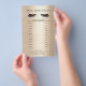 Maskenbildner-Kosmetiker- Eyelash Extensions-Flyer-Preisliste à Goldfarben. Über "weiteres personalisieren" können Sie Schriftart, Farbe, Position etc individuell wählen und verändern. Bei diesem Produkt werden keine Goldpartikel / Glitzer verwendet, Or ist nur der Farbton.