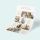 The front features a striking 12-square grid layout, offering a dynamic mix of eight photo slots and four dedicated text blocks. This balanced design allows you to showcase the couple’s journey, from the first date to the proposal, while keeping the essential party details clean and readable. It’s a fun, contemporary way to build excitement before the celebration even begins.