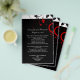 Ensemble de papeterie et de mariage noir contemporain moderne gras et saisissant avec des accents noirs et blancs avec des accents rouges, avec un fond délicat de feuille de défilement en spirale. Personnalisez en ligne avec vos détails de mariage. Cet article est disponible en tant que collection de mariage complète comprenant des invitations, des cartes de réponse, des cartes de sauvegarde, des aimants, des autocollants, des cartes de table, des classeurs de planification de mariage et des albums photo et plus encore !