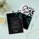Gras et saisissant contemporain mariage noir invitations avec blanc et aqua turquoise d'accents turquoise, avec arrière - plan tourbillon festif feuille de rouleau. Customisez en ligne avec vos coordonnées de mariage.