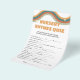 Entrez dans un monde de mélodies fantaisistes et chantez avec notre jeu de Baby shower "Super Baby" Nursery Rhymes Quiz ! Ce rebondissement sur un jeu classique vous transportera à l'âge d'or des comptines, avec une ambiance super qui complète parfaitement votre célébration de baby shower. Insufflé de couleurs vives, de motifs psychédéliques et de polices funky des années 60 et les années 70, notre Quiz "Super Baby" Nursery Rhymes saisit l'essence de l'ère super. C'est une façon agréable et divertissante de tester votre connaissance des rimes bien-aimées de pépinière et de partager une expérience nostalgique avec vos invités. Le jeu comporte une série de questions sur le thème de la comptine, qui incite les participants à se souvenir des personnages, des paroles et des histoires enchanteresses de ces favoris d'enfance intemporels. De Little Miss Muffet à Humpty Dumpty, ce quiz couvre un large éventail de rimes classiques de pépinière qui feront chanter tout le monde en un rien de temps. Les cartes de jeu sont ornées de motifs d'inspiration rétro, dont des couleurs kaléidoscopiques et des motifs branchés, évoquant un sentiment de joie et de fantaisie. Chaque carte est minutieusement conçue pour plonger vos invités dans l'ambiance super de votre baby shower et créer une expérience mémorable. Le jeu peut être joué individuellement ou en équipe, déclenchant une compétition amicale et des discussions animées alors que les invités se font les premiers à crier les bonnes réponses. C'est une activité parfaite pour faire participer des invités de tous âges et rassembler des générations dans un amour partagé pour les comptines. Les jeux inclus sont assez de cartes de jeu pour chaque invité, ainsi qu'une clé de réponse pour un score facile. Les cartes sont imprimées sur des matériaux de haute qualité, assurant la durabilité et vous permettant de chérir les souvenirs de ce baby shower super longtemps après la fin de la fête. Alors, préparez-vous à chanter, danser et vous rappeler avec notre jeu de Baby shower "Super Baby" Nursery Rhymes Quiz. C'est un ajout fantastique à votre célébration rétro, apportant le rire, la nostalgie, et une expérience mémorable pour tous les participants. Laissez couler les bonnes vibrations pendant que vous plongez dans le monde enchanteur des comptines et fêtez l'arrivée imminente de votre petit bébé super!