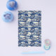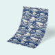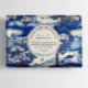 Une feuille d'emballage à savon floral avec une scène de campagne bleue et blanche.