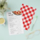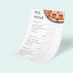 Passez votre soirée pizza avec cette carte de performance amusante ! Doté d'une charmante pizza illustrée à l'avant et d'une en vichy rouge classique à l'arrière, cette carte de pointage permet de noter chaque pizza de 1 à 5. Que vous soyez l'hôte d'une fête de fiançailles, d'une fête de bachelorette, d'un dîner de répétition ou d'un anniversaire d'enfant, c'est une offre incontournable d'inspiration italienne ! Parfait pour tous ceux qui aiment la pizza et les jeux, cette carte de performance pour pizza party ajoute une touche compétitive et hilarante à votre événement. Découvrez les pizzas assorties de Victoria Grigaliunas de Do Tell A Belle à l'adresse www.zazzle.com/dotellabelle! 🍕 🎉