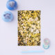 Vue macro des grains de pop-corn chauds ou des grains de grains derrière le verre humide. Photographie texturée. Ne manquez pas l'occasion de regarder un drôle de T-shirt I'M FINE qui représente un estomac plein de pop-corn.