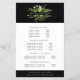 Le design de carte flyer botanique chic affiche magnifiquement vos services, liste de prix ou informations d'affaires. Le design présente un logo de verdure aquarelle en vert fougère, forestier et printanier, encadrant votre nom et/ou nom d'entreprise contre un riche arrière - plan noir contrastant. Comprend quatre en-têtes personnalisables et des champs de texte de corps, ainsi que de l'espace pour vos coordonnées professionnelles en bas. Pour ajuster la disposition, entrez votre texte, puis utilisez la fonction Personnaliser pour modifier le positionnement et la taille des polices.