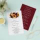 Floral tournesol budget programme de mariage flyer avec un bouquet rustique avec des tournesols aquarellés, roses rouges, fleurs violettes et verdure. Cet élégant programme est idéal pour un mariage de automne à thème boho. Ces programmes de mariage bon marché sont imprimés sur des feuilles de papier pour une option économique.