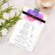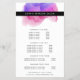 La conception d'une carte de dépliant aquarelle vibrante affiche vos services, liste de prix ou informations commerciales de manière magnifique. Le design présente un logo de tache d'encre aquarelle en rose fuchsia et violet, encadrant votre nom et/ou le nom de votre entreprise. Comprend quatre rubriques personnalisables et champs de texte de corps, ainsi que de l'espace pour vos coordonnées en bas. Pour ajuster la mise en page, entrez votre texte puis utilisez la fonction Personnaliser pour modifier le positionnement et les tailles de police.