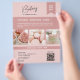 Faites la promotion de votre boulangerie avec style et douceur! Ce prospectus personnalisable est parfait pour mettre en valeur vos cupcakes, macarons, gâteaux et bien plus encore. Ajoutez vos propres trois photos pour mettre en évidence les best-sellers ou les gâteries de signature, et personnalisez le texte avec vos initiales, nom, coordonnées et slogan. Une section dédiée à un code QR permet aux clients d'analyser et de commander facilement ou de vous suivre en ligne. Idéal pour les boulangeries, les pâtissiers, les pâtissiers, les pâtissiers et les boutiques de desserts qui souhaitent partager leur marque d'une manière belle et professionnelle.