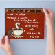 Épinez votre magasin avec ces tasses assorties, t-shirts, prospectus, en-tête et carte de profil avec notre design Qu’est-ce qu’un café, sans beigne!, avec une tasse blanche avec café et vapeur qui en sort et un beigne de chocolat qui se penche sur son côté contre la tasse blanche. Le prospectus, en-tête et la carte de profil sont également accompagnés d'un arrière - plan brun-rougeâtre avec une bannière rouge-épine brune qui y sert du café. Voir d'autres produits dans cette conception