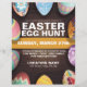 Circulaire de Pâques de chasse aux oeufs avec des oeufs de Pâques décorés de couleurs cool autour de la frontière. Customisez ce prospectus pour votre chasse spéciale aux oeufs de Pâques.