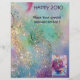 Clown rose, coloré, capricieux, drôle jouant du bugle avec un hibou expressif et des notes musicales joyeuses, fleurs, feuilles en rouge vif, fuchsia, violet, violet, bleu, couleurs blanches, aquarelle de Bulgan Lumini (c)