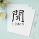 Le symbole Kanji japonais pour le mot "Ecouter" est montré dans les coups de pinceau de calligraphie et a l'air très cool sur un tee-shirt, sac, casquette, ou bouton. Nous avons même ajouté la traduction anglaise ci-dessous pour que les gens reçoivent le message. La conception du personnage est basée sur une passerelle avec une oreille à l'intérieur. Joli cool ! Vous pouvez modifier la couleur de l'arrière - plan et ajouter du texte.