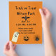 Affiche pour une fête de quartier Halloween trick or treat organisée dans un parc local. Dites à tout le monde de venir au parc local pour échanger des bonbons, participer à un concours de costumes ou à d'autres activités d'Halloween.