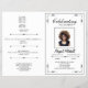 Célébration du Journey Folded Program en noir et blanc, avec des polices élégantes. Ce programme funéraire est une façon spéciale de se souvenir de votre être cher. Modifiez facilement tous les textes pour tenir compte des services et des souvenirs que vous souhaitez partager. Ajoutez une photo de votre être aimé avec son nom et ses années de vie. Sur le dos vous pouvez écrire la nécrologie et le programme. Il y a beaucoup de place pour décrire votre service commémoratif. S'il vous plaît, envoyez-moi un message, si vous avez besoin d'aide pour trouver des articles correspondants. Pliez-le vous-même pour un programme funéraire élégant et pratique!