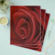 Une photo rapprochée d'une rose rouge romantique montrant les détails des pétales avec de petites gouttelettes d'eau dessus.