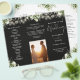 This elegant wedding trifold program features floral greenery and string lights on a black background. Designed by Thisisnotme©