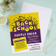 Annoncez votre lecteur de fournitures scolaires avec ce prospectus créatif amusant et audacieux qui présente une typographie à bulles avec un contour de ligne blanc, une illustration, une note, et des tons violets et jaunes. Customisez le modèle à votre goût.