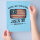 Jésus revient, cette conception chrétienne comporte un drapeau américain avec une croix et les mots "normal ne revient pas, Jésus est, Apocalypse 14.