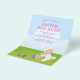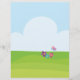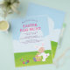 Ce mignon prospectus de Pâques présente une fille en costume lapin mignon tenant des oeufs de Pâques sur une herbe verte avec des fleurs de printemps et papillon sur le ciel bleu et un arrière - plan de nuage blanc. Facile à personnaliser avec des options personnalisées.