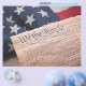We the People preamble of the U.S. Constitution on a vintage American flag