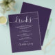 Ces élégants menus de boissons minimalistes violet script sont parfaits pour toute célébration. Conçu par Thisisnotme©
