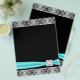 Elégant revêtement bleu turquoise et argenté avec modèle de trim arc en diamant bleu turquoise. Ce magnifique flyer bleu noir et turquoise peut être facilement customisé pour votre événement en choisissant simplement le bouton orange "Customisez!" pour commencer à ajouter vos détails d'événement, le style de police, la taille et la couleur de police et le libellé. Veuillez noter que tous les prospectus, autocollants, cartes et modèles d'invitation que vous trouverez sur Zazzle sont des graphiques imprimés sans bijoux, arcs, surélevés, gaufrés, ni pièces ou pièces ajoutées.