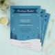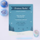 Un joli prospectus de marché de Noël aux tons bleus avec un paysage enneigé et ses sapins, des flocons de neige et des étoiles. Il vous suffit de customiser des textes et de l'utiliser pour vos événements de Noël locaux. Vous pouvez également l'utiliser comme invitation à la fête ou dîner !