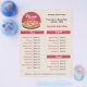 Un menu & tarif flyer pour votre pizzeria restaurant, food truck, livraison à domicile service de nourriture ou chef de cuisine. Il se compose d'une pizza au pepperoni, d'olives et de basilic posée sur une planche en bois et d'un demi-cercle rouge. Vous pouvez les distribuer à vos clients ou dans des boîtes aux lettres.