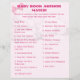 Design features a light pink background to the image of a pink bow amid white puffy clouds. Heading is displayed in bold pink. Directions appear just below heading and are featured in a clear, easy-to-read print. Customer is given the option to use the provided authors and titles or customize your own! Answers to the game are as follows: 1.C, 2.J, 3, G, 4.E, 5.H, 6.A, 7. B, 8.D, 9.I, 10, F