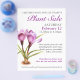 Parfait pour vos promotions de vente plante printanière ou événement de vente plante de bienfaisance. Le design présente une aquarelle d'art illustrant un crocus de Sarah Trett. Le dos du prospectus est mauve. Le prospectus de vente plante est prêt pour vous à personnaliser avec votre propre texte promotionnel. Utilisez un stock léger si vous prévoyez de plier ces circulaires. Uniquement conçu et peint par Sarah Trett.