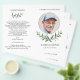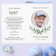 Doté d'une demi-couronne de branches d'oliviers paisibles, cet aquarelle offre un programme funéraire pliable. Conçu pour être imprimé sur les deux côtés puis plié à la maison, l'avant affiche le nom du défunt et vous pouvez insérer une photo préférée dans le cadre circulaire à effet argent tandis que l'intérieur peut être édité avec l'ordre de service ou ce que vous voulez. A une époque difficile, ce gracieux design verdoyant aux frontières argentées convient à une célébration de la vie, un service religieux de commémoration d'église ou une cérémonie humaniste. L'effet de feuille d'argent FAUX est imprimé et n'est PAS métallique.