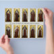 Peintures carmélites religieuses du sanctuaire de l'église catholique Notre-Dame du Mont Carmel à Kenosha, Wisconsin. SAINTS CARMÉLITES Ste. Élisabeth de la Trinité, Ste. María Maravillas de Jesús, Ste. Marie-Madeleine de Pazzi, Ste. Thérèse d'Avila, Ste. Thérèse de Lisieux, Bx Titus Brandsma, St. Jean de la Croix, Ste. Thérèse des Andes, Ste. Mariam de Jésus Crucifié, La petite arabe et Lys de Palestine Ste. Thérèse-Bénédicte de la Croix Prière à Notre-Dame du Mont Carmel au dos. Tout le texte et les polices peuvent être modifiés.