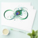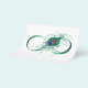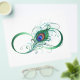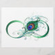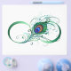 Le symbole de l'infinity with a bright, green, artistic peacock feather on a white background. Tattoo style.