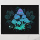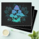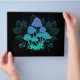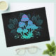 Mysterious, bioluminescent, hallucinogenic, bright toadstools with bushes of marsh plants on night, dark, glowing background. Glowing mushrooms. Goblincore, Mushroomcore,