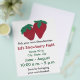 Personnalisez facilement ces tracts de fraises avec vos informations sur le moment de la cueillette, le nom de votre entreprise, les heures de cueillette, etc. Sur ces tracts figure une belle peinture de deux fraises mûres et entières avec des feuilles vertes.