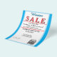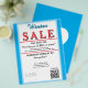 Jewelry or any business type supplies. Festive light blue and white border. Insert Sale price and date details. Upload Your Logo, or delete to leave area blank. Insert Name and Website or other contact QR Code. Winter is written in sky blue azure blue script. Sale written in large red typography. Thank You is written inside large white heart on backside. Original Design by TamiraZDesigns.