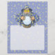 Old wizard with blue cape looking at crystal magic ball.
